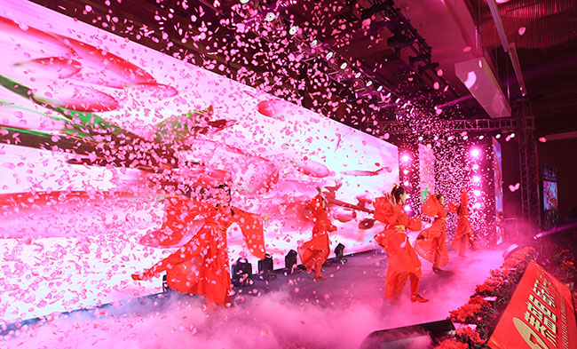 節目觀看過半,黃總帶領部分中高層管理人員進行了現場敬酒,領導們走到每一桌前與大家進行親切交談,表示新年的祝福。隨著大合唱《新年快樂》的上演,本場晚會圓滿落幕。