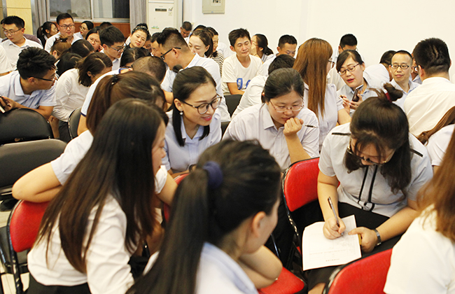 本次培訓分為理論講解和實操演練兩個環節,鞏總從PDCA的內涵及實質出發,闡述了PDCA在日常工作中的操作步驟和重要意義。培訓內容貼合實際,案例豐富翔實,講解深入淺出,獲得參訓人員的一致好評。之后參訓人員分別組合成六個小組進行PDCA循環實施演練,以周六大檢查活動為案例題目,在已準備好的表格上寫上檢查活動存在的問題,進行原因分析,明確目標及責任人,制定相關解決方案。各小組成員在現場對案例進行深入剖析和熱烈討論,共同尋找解決問題的辦法,鞏總對各小組的討論結果進行現場點評,使參會人員深受啟發。