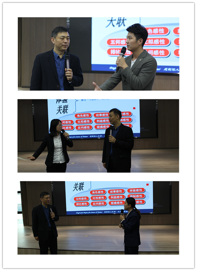 陳恭華的授課方式十分“接地氣”,所傳授的知識(shí)和技巧均結(jié)合實(shí)際培訓(xùn)課堂場(chǎng)景展開,深入淺出、易于“消化吸收”,令參訓(xùn)人員受用無窮,可謂干貨滿滿。課上,陳恭華多次提到了“課堂互動(dòng)”的重要性,講師通過提問的方式吸引學(xué)員關(guān)注度和積極性,通過啟發(fā)式教學(xué)的方式引導(dǎo)學(xué)員主動(dòng)思考,強(qiáng)化學(xué)習(xí)效果。在“演講技巧”技能模塊,陳恭華講解了如何將理性和感性內(nèi)容恰當(dāng)交融,以提升表達(dá)的效率和效果;在“授課技巧”技能模塊,陳恭華主要講解了講師如何控場(chǎng)、互動(dòng)和應(yīng)對(duì)突發(fā)狀況的方法;在“課程開發(fā)”技能模塊,陳恭華主要講解了如何確定課程內(nèi)容、如何設(shè)計(jì)課程互動(dòng)、如何搜集課程資料及培訓(xùn)課件制作技巧等知識(shí)。
